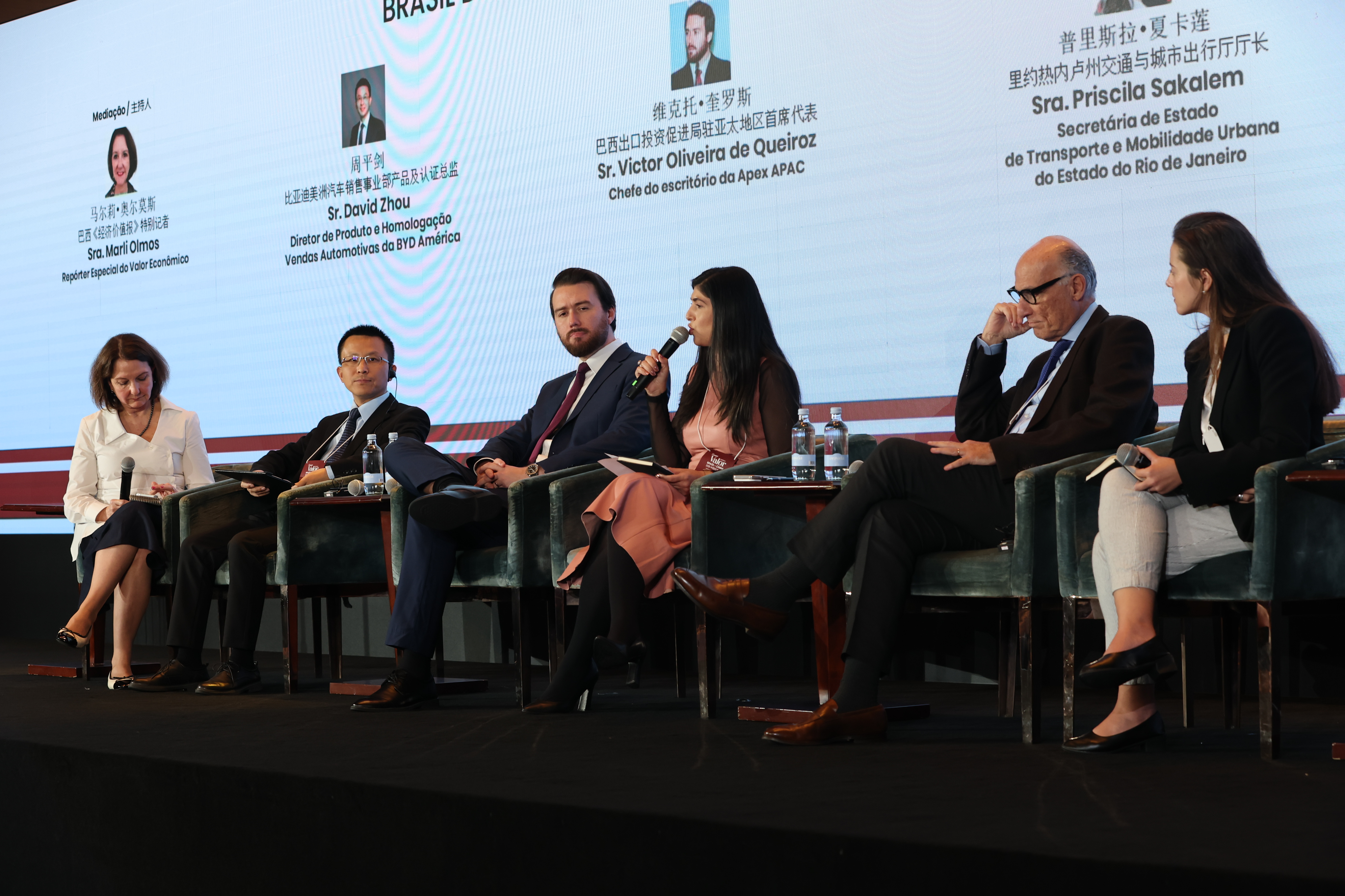O painel reuniu também David Zhou, Diretor de Produto e Homologação da BYD América; Victor Oliveira de Queiroz, Chefe do Escritório da ApexBrasil na Ásia-Pacífico; Priscila Sakalem, Secretária de Estado de Transporte e Mobilidade Urbana do Rio de Janeiro; e Briza Bueno, Diretora-Geral da AliExpress no Brasil.