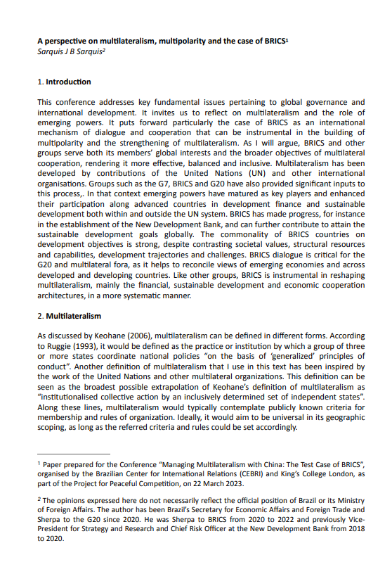 A perspective on multilateralism, multipolarity and the case of BRICS